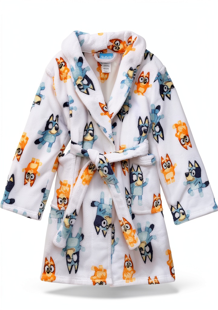 Our Bluey bathrobe stands out due to its official licensing, guaranteeing authentic designs and high-quality materials. The 100% polyester fleece is both warm and easy to care for, while the durable construction resists wear from frequent use. We prioritize safety and comfort, adhering to strict manufacturing standards to provide a product that parents trust and children love.