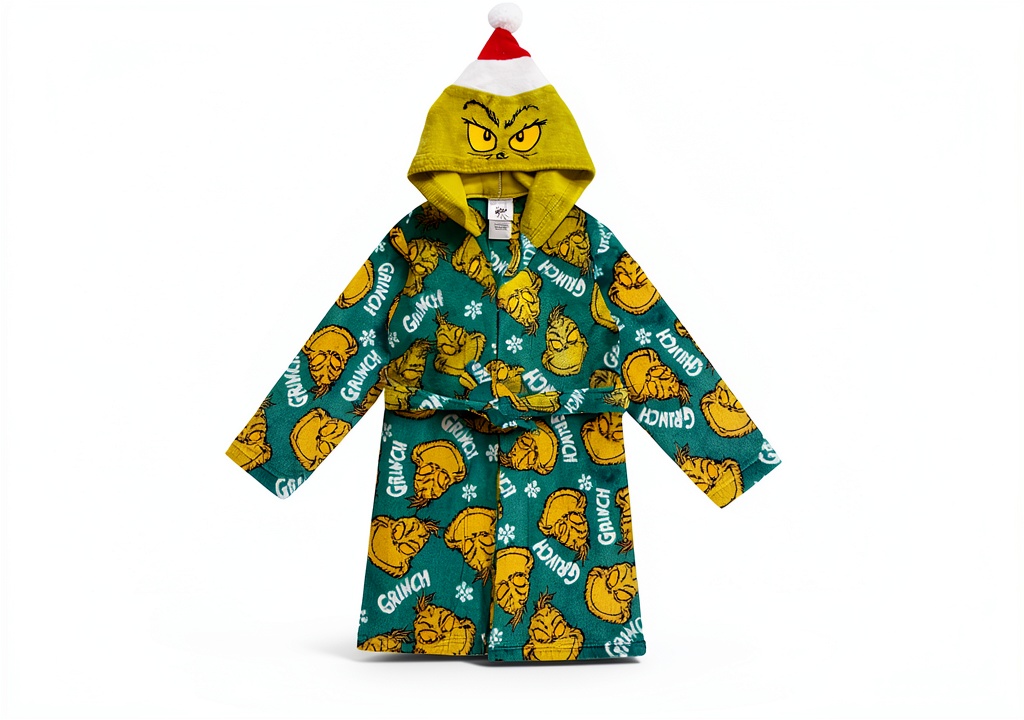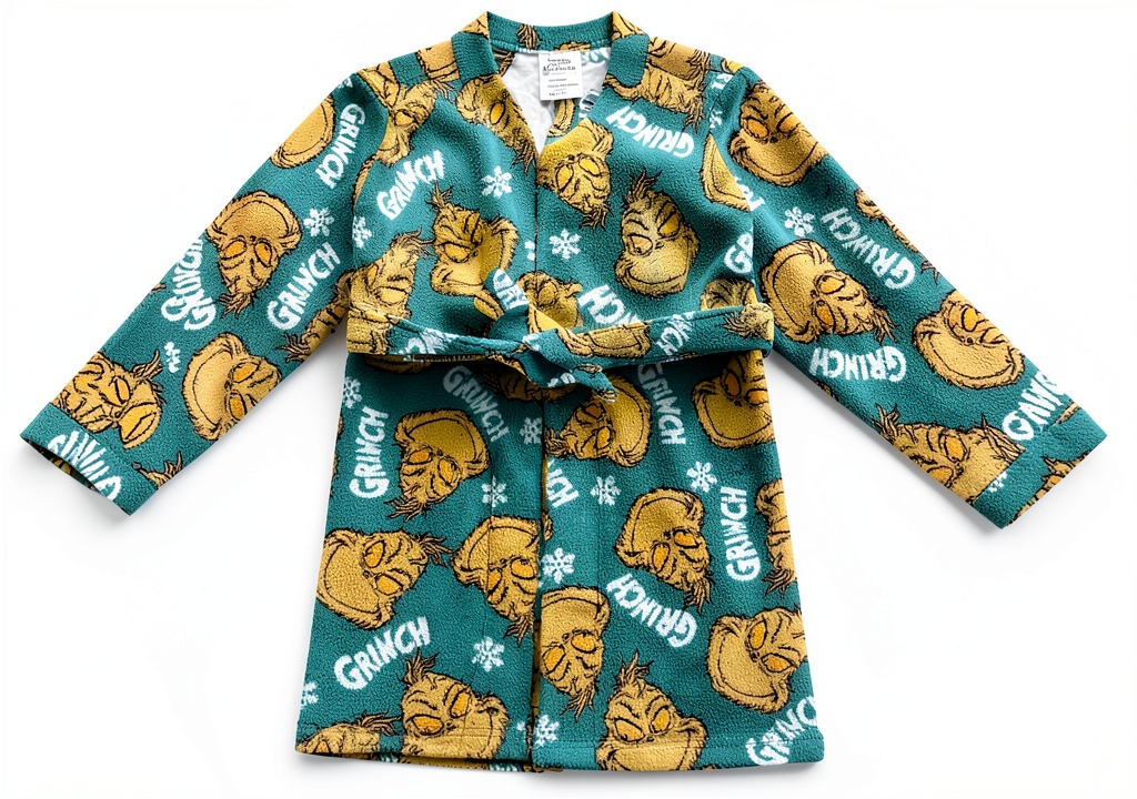 This Grinch robe is perfect for a range of occasions, including Christmas morning celebrations, bedtime routines, and post-bath relaxation. It serves as both a functional bathrobe and a playful costume piece, making it great for sleepovers, holiday parties, and family gatherings. The target audience includes boys and girls who are fans of the Grinch, typically aged for children’s wear, providing warmth and fun in cozy settings like homes and vacations.